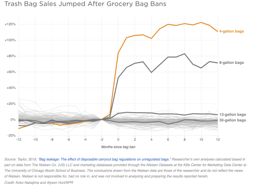 Similarly, plastic bag bans could have unintended consequences. Have you read this NPR article explaining why? If not, you should check it out asap. The short version is this:
