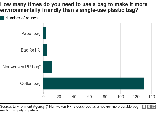 All materials have environmental impacts, and paper (from trees), glass (from sand) and metal (mined) are often much more resource intensive to manufacturer. And from a disposal perspective, papers that end up landfill emit much more methane and at a faster speed than plastic, which degrades much slower. Point is: durability and reusability have to be part of our conversation, because we are not doing the planet a favor if we all switched from single-use plastic bags to single-use paper bags.