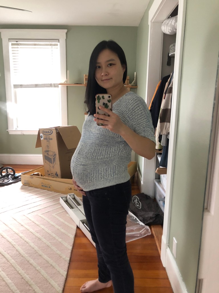 In all honesty, if your goal is to spend the least amount of money possible, you can probably get almost everything you need from local mom or Buy Nothing groups. I did get a few items this way, but this was not the main route I ended up taking. I was ok with acquiring new and new-to-me things if they had staying power in my closet, and I wanted to be comfortable and presentable for work, even though I have been working remotely since the pandemic started. That said, I’m no style blogger, so this is not a “maternity essential” fashion blog post. I just thought it’d be fun to document what items/what quantity I ended up needing through pregnancy and postpartum, in case this is helpful for other expecting parents! I also included links when I can, though much of what I worn was old/used.